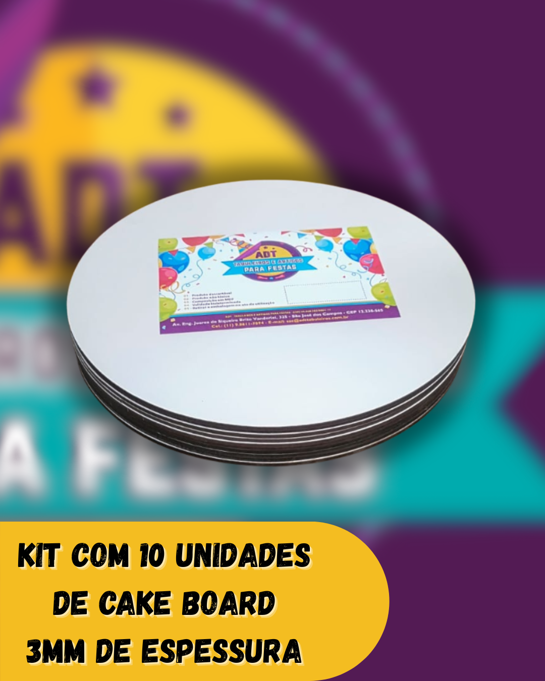 O valor descrito se refere a 10 unidade de Cake Board Branco modelo Redondo com espessura de 3mm do tamanho selecionado.